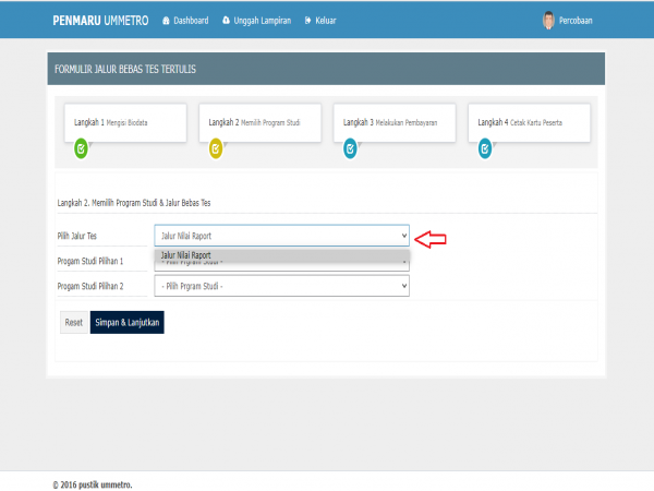 6. Pilih Jalur Tes : "JALUR NILAI RAPORT"