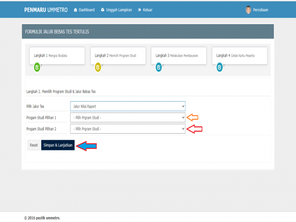 7. Pilih Program Studi. Kemudian klik “SIMPAN & LANJUTKAN”