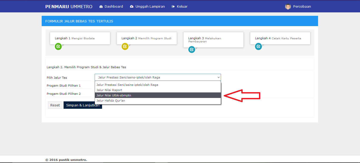 6. Pilih Jalur Tes : "JALUR NILAI UTBK-SBMPTN"