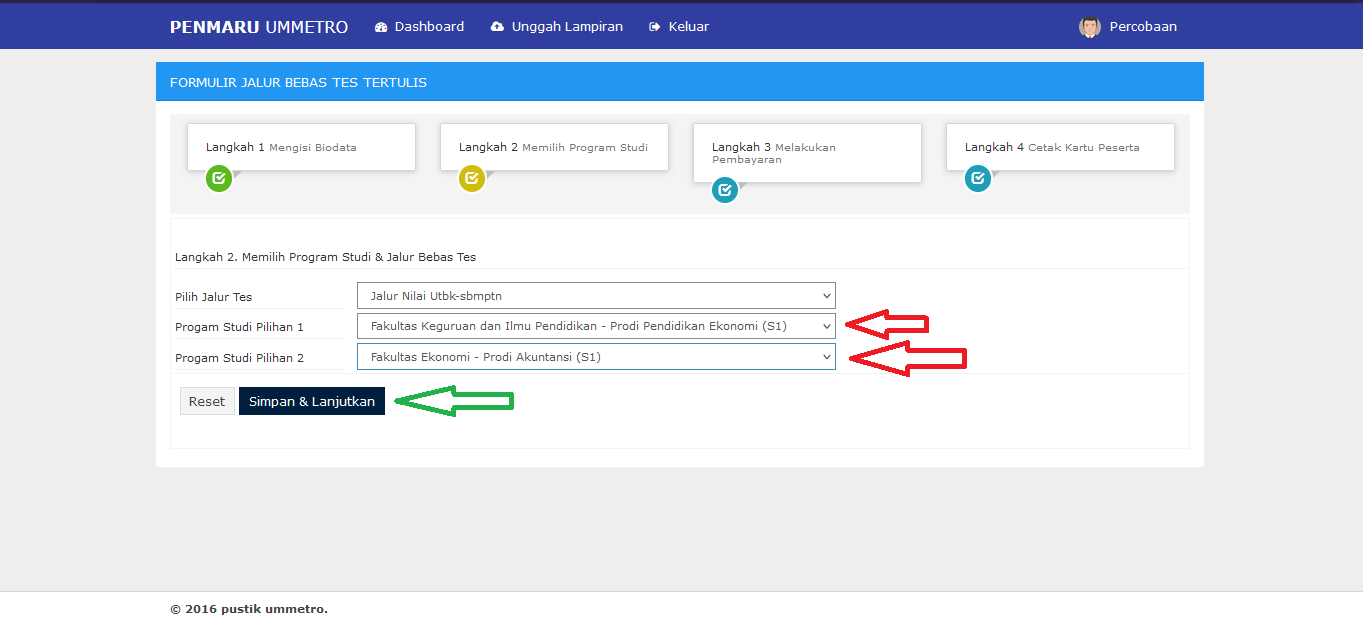 **Pastikan Program Studi Pilihan 1 merupakan PENDIDIKAN EKONOMI